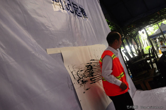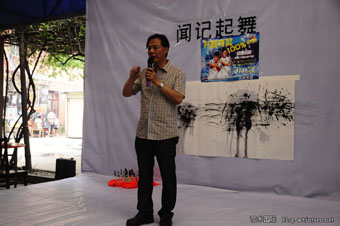 6月26日受邀参加了年轻艺术家陈胄、奎森、崔孝华、税淋等举行的现场艺术活动:《“水墨”相遇“芭蕉园”》。其实,这是他们主持的“安置房文化站艺术项目”的中一个阶段性的展览。这两年,陈胄、奎森等年轻艺术家始终在关注中国史无前例的城市化进程中,拆建、安置和城乡一体化所带来的种种问题和思考。特别是,在广大农民告别了土地,告别了他们所熟悉的乡村生活方式,住进了安置房或农民新村之后,在农民旧有的生活方式和新的居住环境之间,到底发生了哪些巨大的变化,他们是如何应对这一新的巨大变化。陈胄及其共同劳动的艺术家尝试让艺术介入参与到这一巨大的历史变迁之中,记录、描述和再现这一涉及无数中国农民的城市化进程,以及自己对这一进程的观察和思考。 这个展览是在双流国际机场旁边一个名为“芭蕉园”的农家乐举办的。首先是陈胄的行为艺术的表演。他将几支毛安装在环卫工人样式上衣的后背,穿上毛笔衣服面对观众,邀请一位搬进安置房的农民描述当年这个区域的自然环境和生活状态。在农民描述过程中,陈胄背对舞台上展开白色长卷,身体随着描述不停地上下左右移动,在白色长卷上留下看似山水画的线条痕迹。这是个意味深长,极富颠覆性的行为表演。其意义就在于艺术家清楚地意识到,在今天的中国,任何临近大城市的乡村地区,任何有关乡村的自然环境和生活状态早已不复存在,只能存留于人们的记忆和想象之中。任何对“家”、“家园”和“大自然”的美好向往都已无可避免地在现代化的历史巨轮之下被碾得粉碎。背对画卷的“描绘”方式就是坦然地承认,面对这一无情的历史巨轮,任何有关乡村的记忆和想象的脆弱不堪,甚至连其可能性都不复存在,但通过口述与绘画行为建构的记忆弥漫在空气中。这个行为表演是所有展出的作品中极具颠覆性和挑战意味的作品。崔孝华的行为表演《再画芭蕉树》以一次性透明杯子盛满矿泉水作为水墨画的载体,可口可乐成为他临摹芭蕉画谱的墨,极为认真地描摹古代水墨名画中的芭蕉树,始终无法成型。最后他的临摹品成为大家解渴的饮料,这个作品幽默中让人无尽地沉思,隐喻传统水墨画在今天消费文化语境下的尴尬和极为复杂境况。 这个展览中还有其他颇为有趣的“重新规划芭蕉园”小型装置作品。其中一个由艺术家張雯、鞠亞楠、王亞楠 、黃梓航合作的作品《八卦山莊》 小型装置是由山区的自然农庄和围绕着农庄一道迷宫构成。其寓意显然是,只有在经历了现代化的种种破坏和困惑之后,人们才能意识到自然的、生态的生活方式对于我们而言有多么重要。还有另一个小型的景观装置《乐之家》,这个景观装置的布局是在篆书的“乐”字上完成的,艺术家强调的是,如何在当代的景观设计融入传统中国文化对自然的向往。具有内蒙古地区生活经验的艺术家,则干脆用装置直接塑造出美丽的草原、羊群和蒙古包。 张斌的一幅《梦回大兴安岭》长条的水墨画,描绘的是大兴安岭森林的自然原貌,由各种经常出没于该地区的动物形态印章图形点缀在画卷描绘的森林之中,观众可以参与盖印的游戏中。所有这些作品都无一例外地展现出年轻的艺术家们,对当下城市化的深切关注,对自然的生活方式的期盼,以及对美好未来的向往。 徐建 2013年6月28日写于成都 |