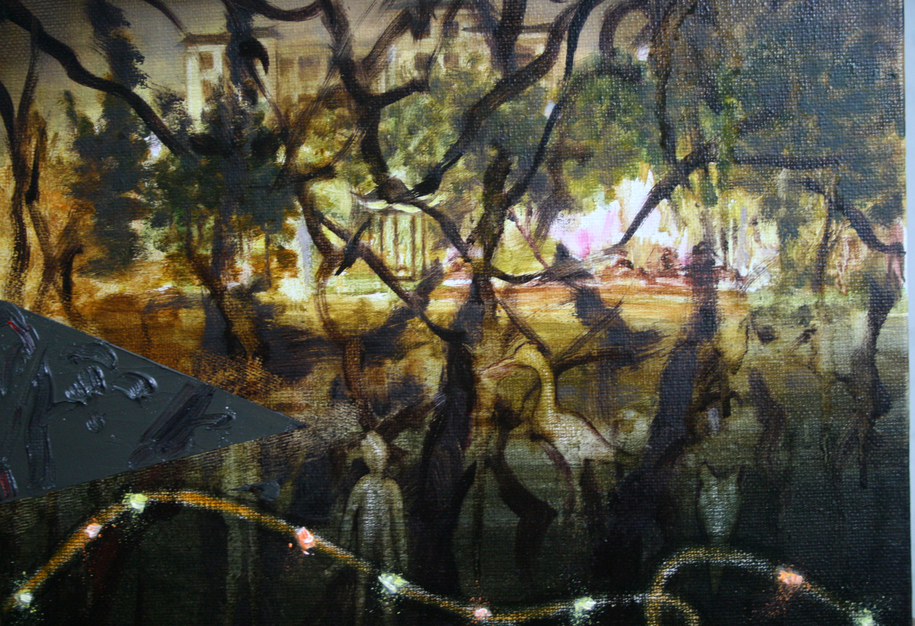 城市风景.游园2Urban landscape-walking in the park 2 Oilpainting on canvas Size 46x38cm Time 2011